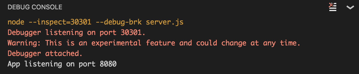 运行应用程序。这将启动应用程序,同时在 VS Code 中启动 调试控制台