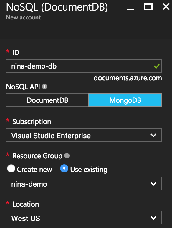 完全创建 DocumentDB 实例需要几分钟时间,因此请等到门户右上角显示部署成功通知。完成后,导航到左侧导航栏中的 所有资源