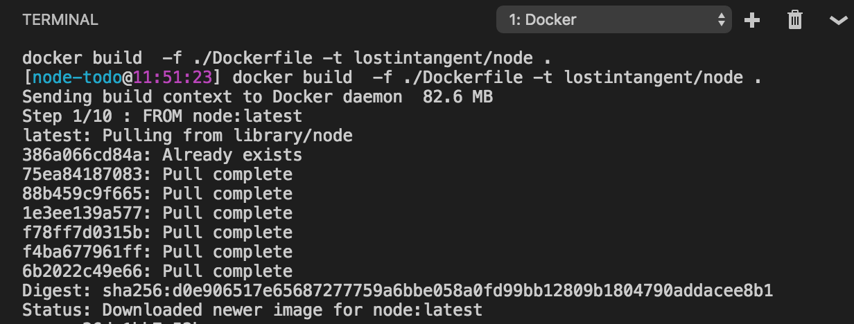,然后给镜像一个标签,其中包含您的 DockerHub 用户名(例如 lostintangent/node