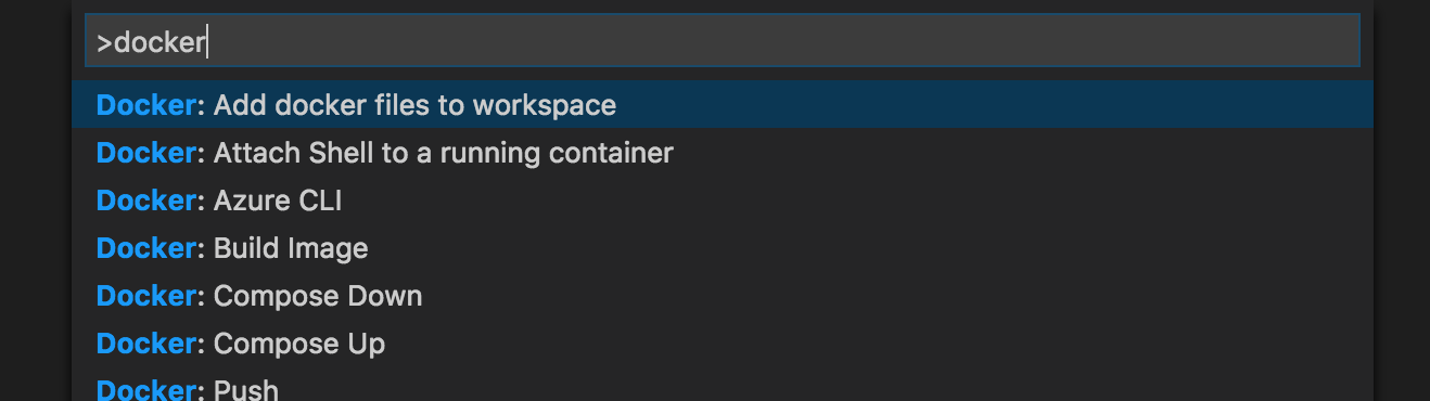 此时,为了让这个镜像易于部署,我们只需将其推送到 DockerHub。为此,调出命令面板,输入 dockerpush