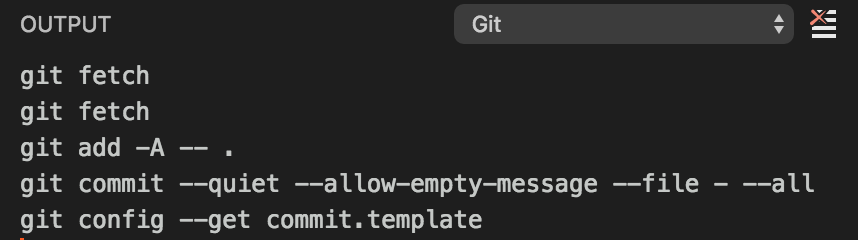 来调出 Git 输出窗口。这将显示 VS Code 为您执行的所有底层 Git 活动。