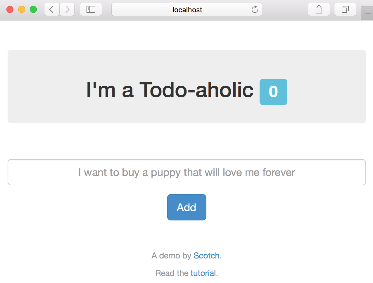 演示使用由 Scotch.io 创建并发布的一个简单待办事项应用程序。它是一个单页 MEAN 应用程序,因此使用 MongoDB 作为数据库,Node/Express 用于 REST API/Web 服务器,Angular.js 1.x 用于前端 UI。使用以下目录跳转到感兴趣的特定部分,否则请继续阅读。